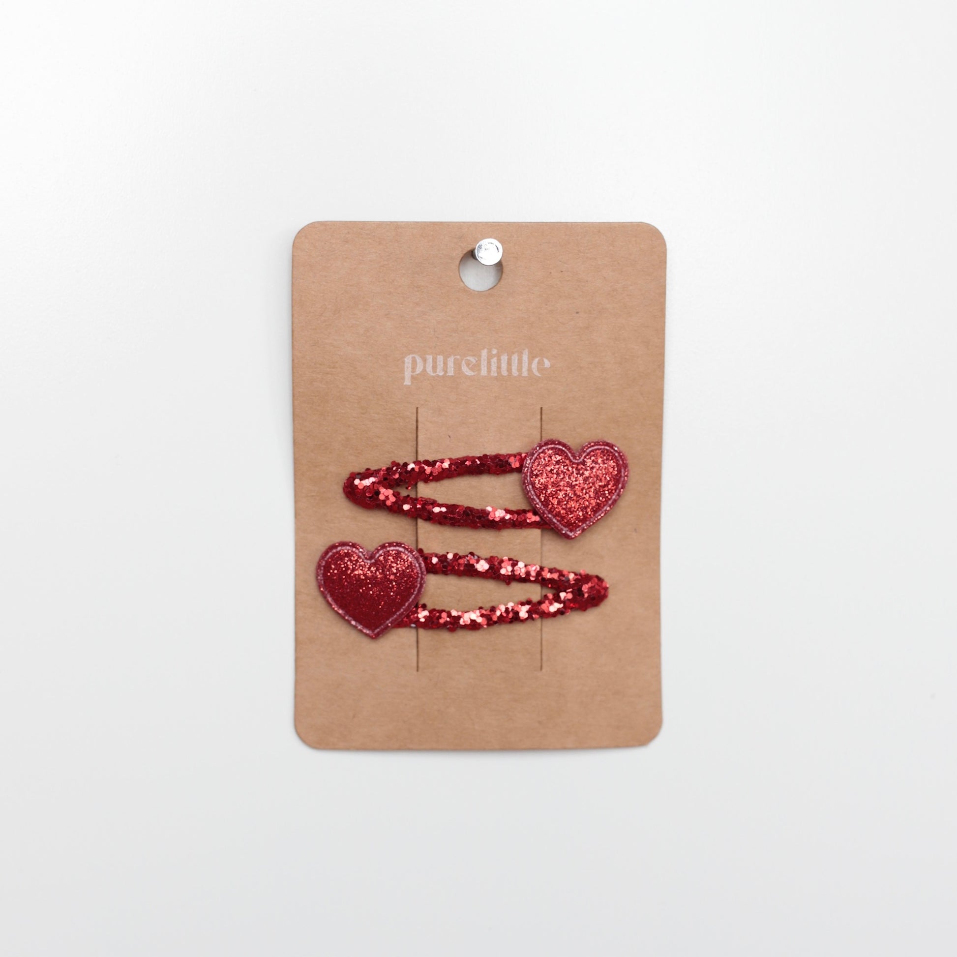 Haarspangen Set aus glitzernden Clic-Clac-Clips mit glitzernder Herz-Applikation.
