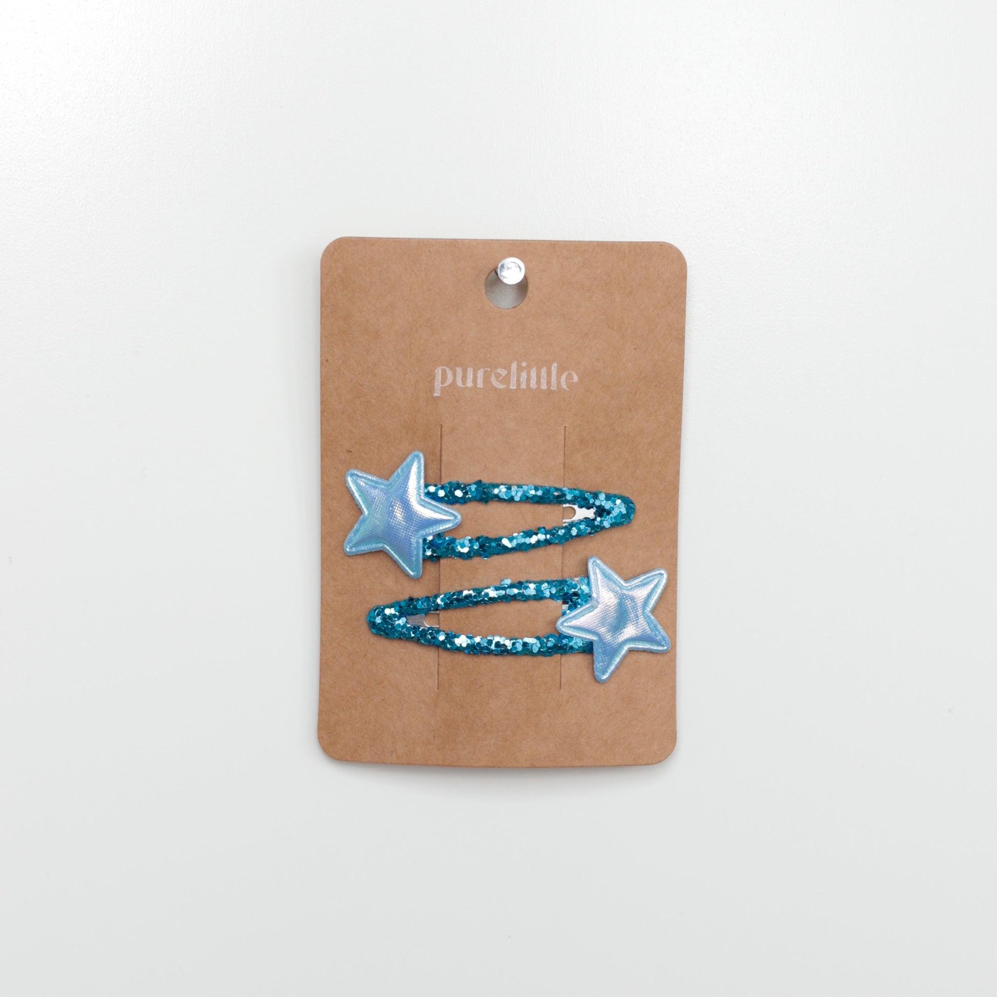 Haarspangen Set aus glitzernden Clic-Clac-Clips mit glitzernder Stern-Applikation.