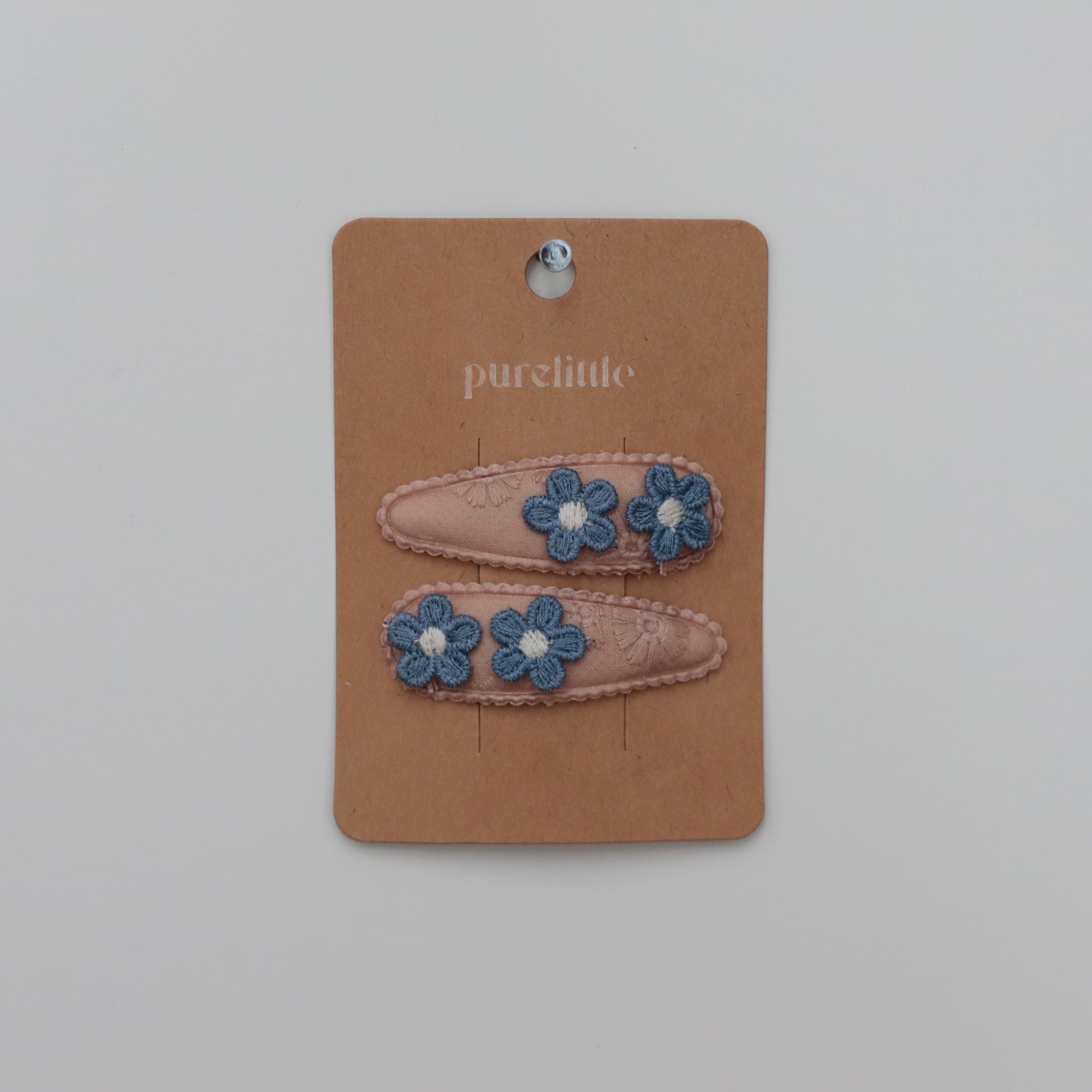 - Clic-Clac-Clips mit floral besticktem Stoffüberzug rosa: 2x5,5cm lang