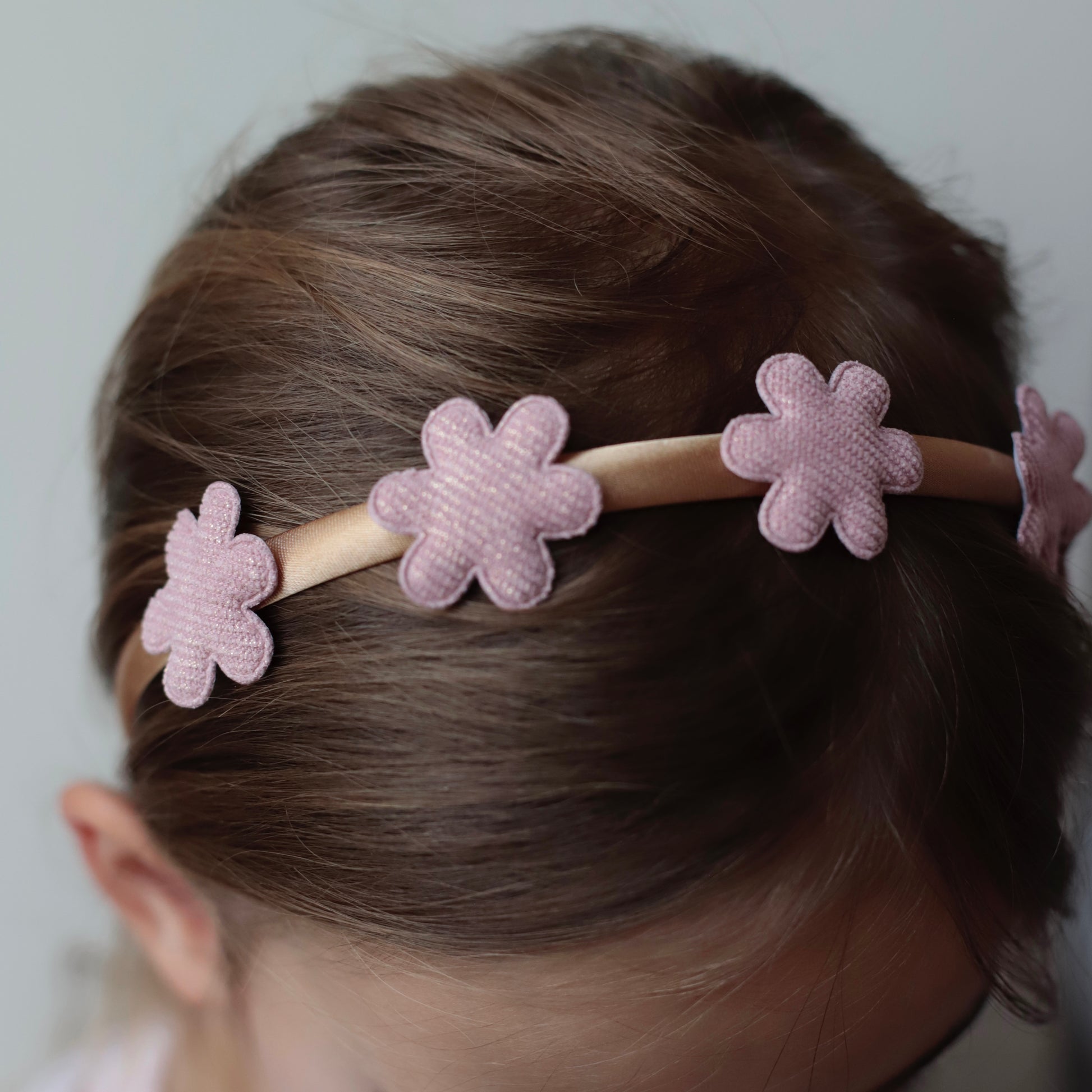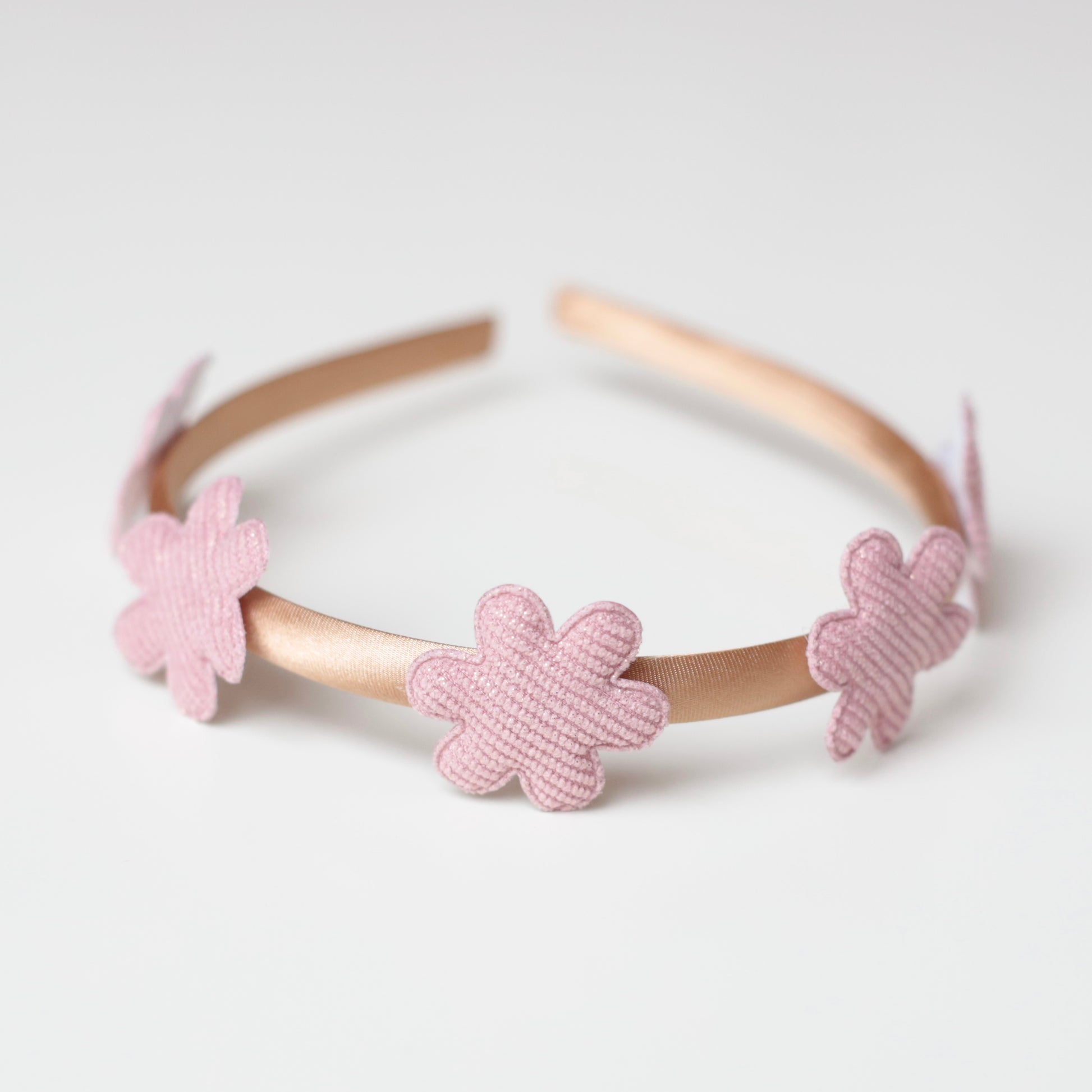 Satin-Haarreifen mit Stoff-Blumen-Applikation.